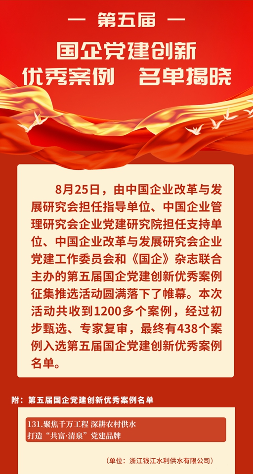 喜報(bào)!錢江水利一黨建品牌入選“第五屆國企黨建創(chuàng)新優(yōu)秀案例名單…